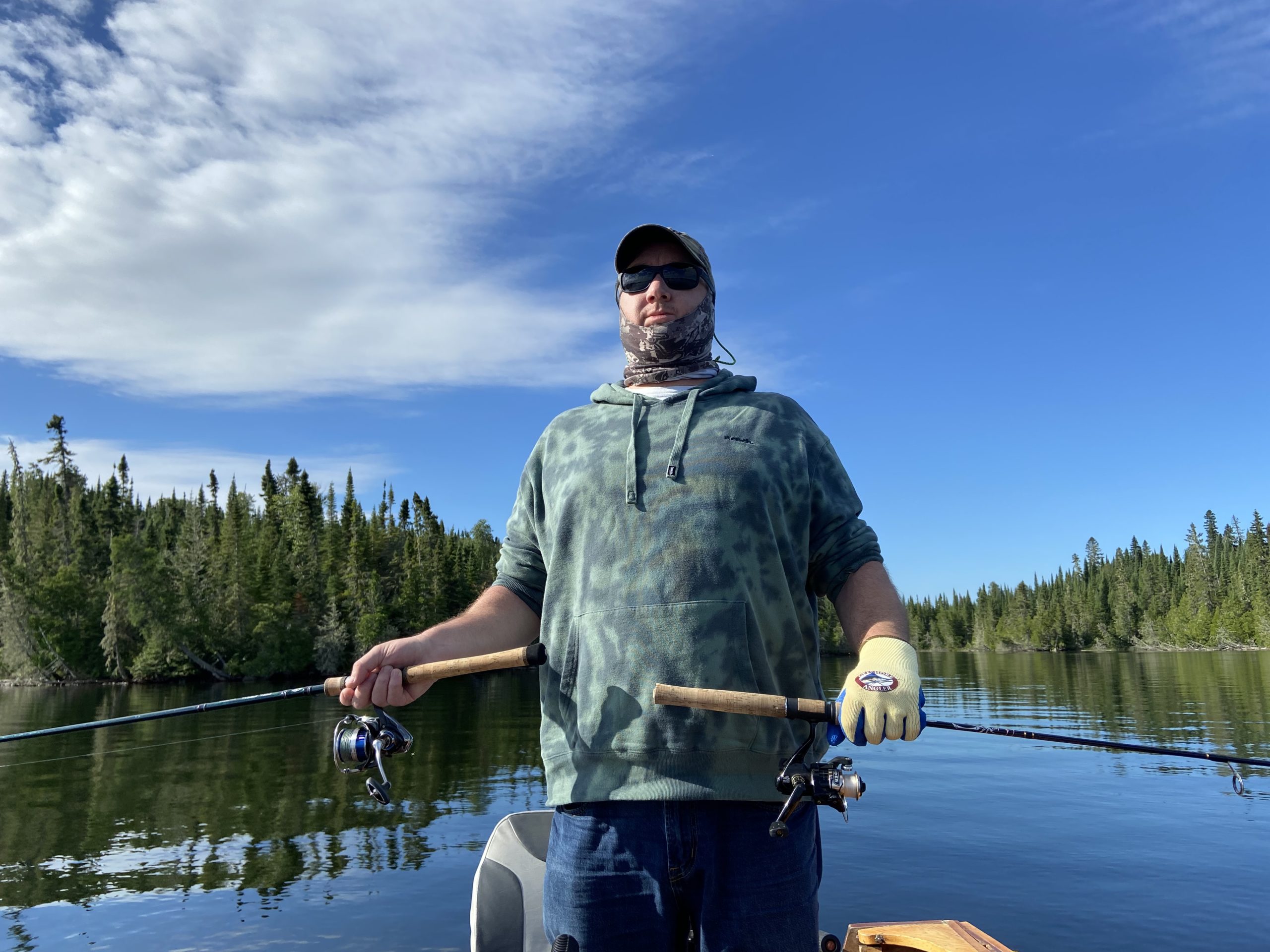 Another delicious breakfast with our table mates and then we headed out with full confidence in our abilities. To optimize fishing time, we opted for a boxed lunch. This is a little cooler full of made to order sandwiches, fruit and cookies. We started fishing on Fire Island and Max caught a 19 inch walleye!